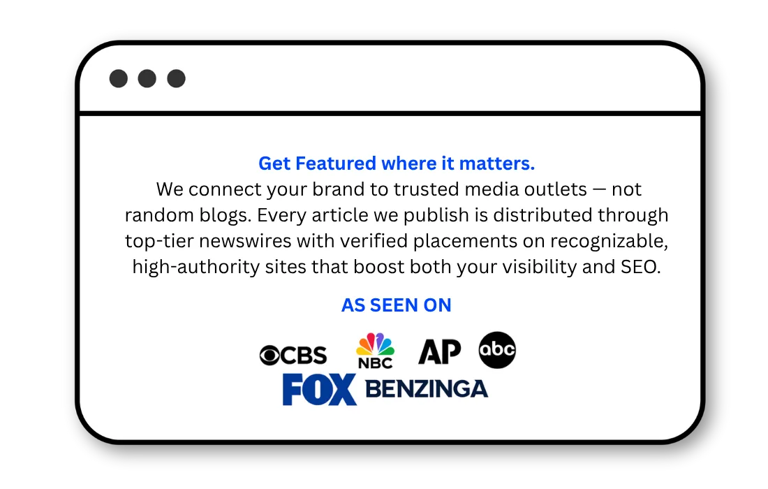 One Premium Press Feature... Get published on top-tier outlets like Worldwide News Network, AP News, Google News, Business Insider, and MarketWatch.